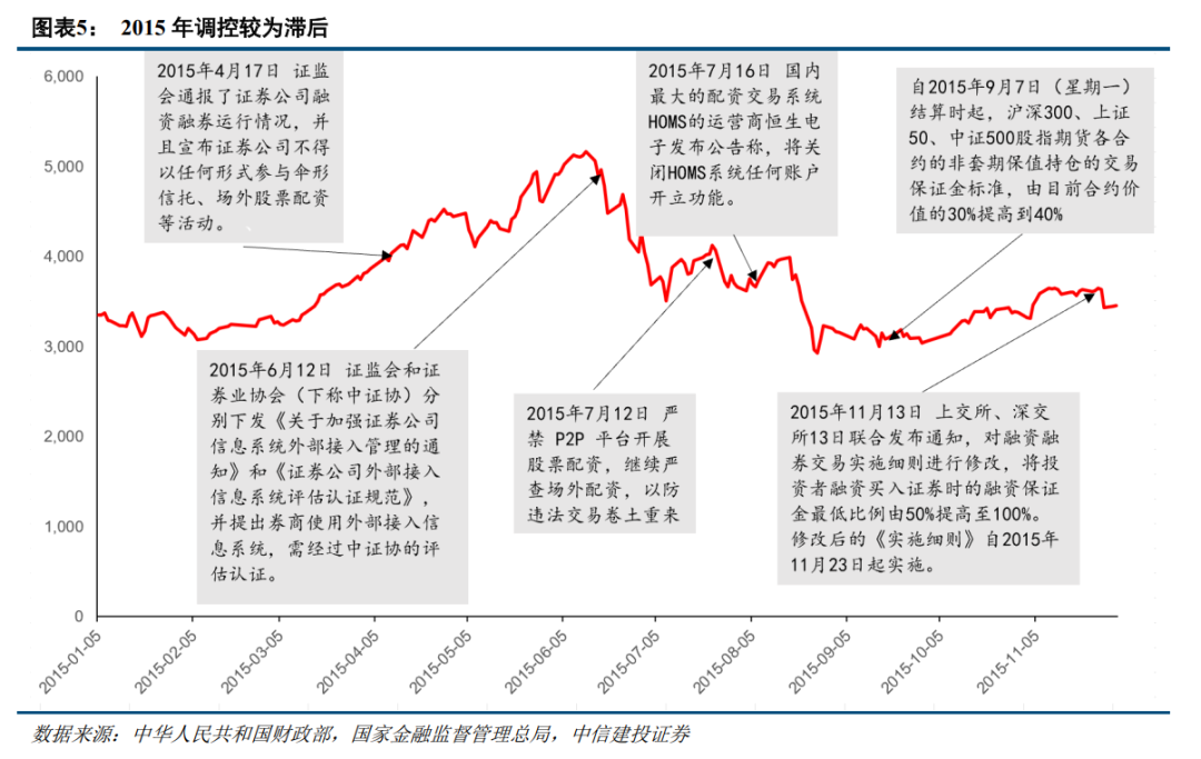 过往牛市中每次出现交易过热都会有降温政策,否则一旦市场形成疯牛后续容易引发更严重的后果。调控的节奏上,往往前期的调控只会引发市场短期下跌,后续更多政策入场后累积影响越来越大才会引发市场大级别的调整,甚至逆转牛市格局。