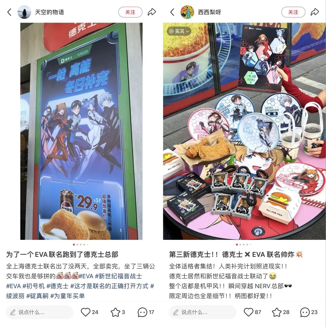 首先是IP选择的前瞻判断。作为顶级动漫IP, EVA拥有广泛且长情的粉丝基础,但目前和西式快餐品牌的联名仍相对较少,德克士精准捕捉年轻群体的IP偏好,激发了核心圈层的关注。