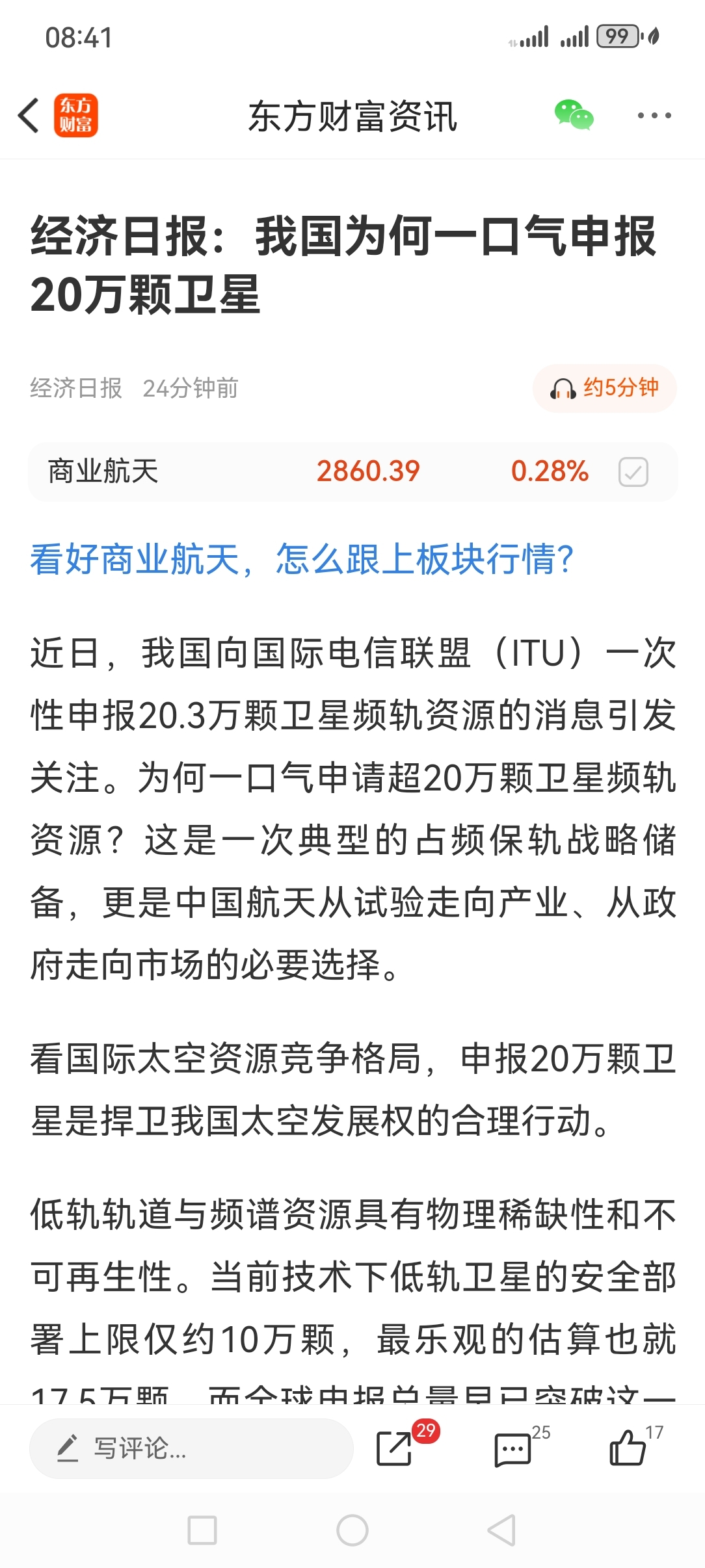 $臻镭科技(SH688270)$ 近日,我国向国际电信联盟(ITU)一次性申报20.3万颗卫星频轨资源的消息引发关注。为何一口气申请超20万颗卫星频轨资源?这是一次典型的占频保轨战略储备,更是中国航天从试验走向产业、从政府走向市场的必要选择。