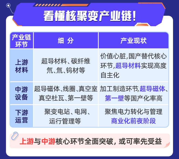 我们看EAST装置的订单就知道,它数十亿的招标,主要就是流向中上游产业链,集中在超导材料、真空室、偏滤器等关键设备制造环节。