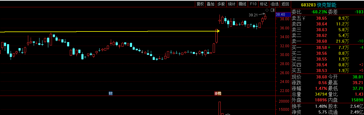 【快克智能】新高,如果这个票是赚钱的话,那么【涨停+缺口】推荐了得有几十只票,只有周五的【中电电机】是亏损的。