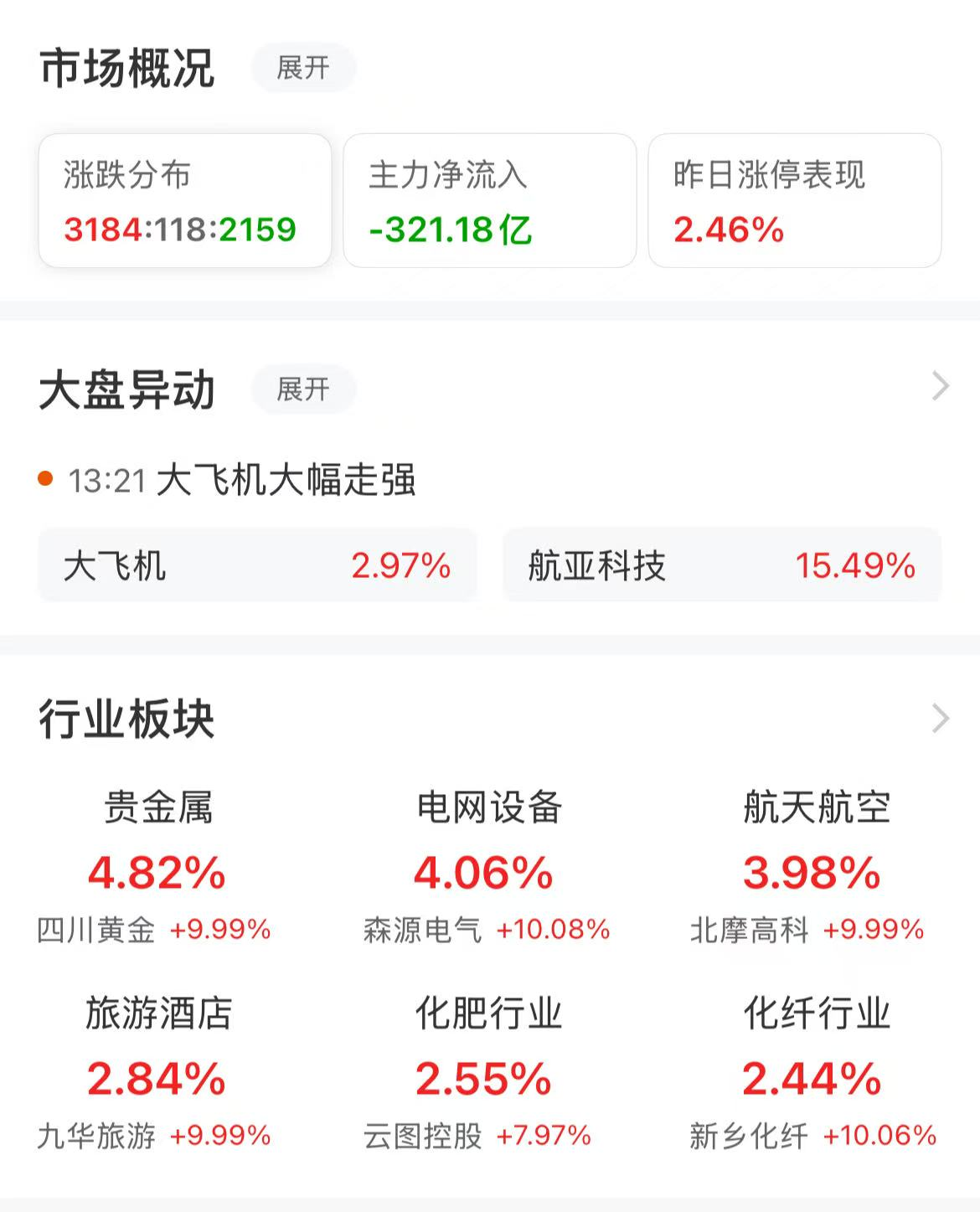盘中特高压,贵金属,航空航天,电网,化肥,电源设备等领涨,互联网,通信,传媒,软件,医疗等领跌。
