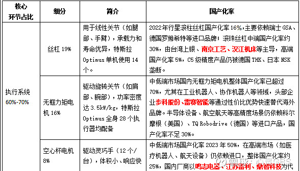 一、人形机器人产业链,丝杠领域价值量及弹性最大