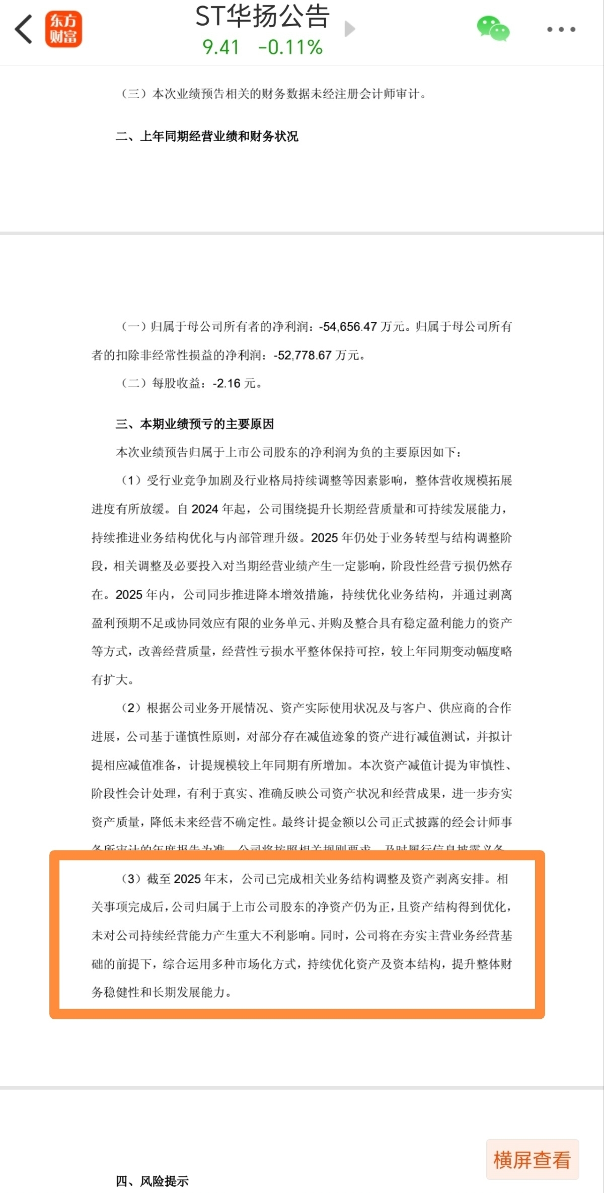 $ST华扬(SH603825)$ ST华扬:净资产无忧,退市警报解除,面对ST华扬2025年预亏5.9-7亿元的业绩预告,不少投资者担心公司净资产会因此转负,其实这种顾虑完全可以放心。据2024年年报显示,公司净资产已有4.271亿元作为坚实基础,核心空轨资产的价值更是稳稳托底,国资委背书。再加上去年12月的关键利好操作——公司成功拍卖苏宁相关债权,收获4998万元现金,同时按照会计准则冲回了2.75亿元已计提坏账准备,这两项叠加,合计为净资产带来了3.25亿元的可观增量。我做个极端情况的推演:即便按照预告中7亿元的最大亏损额度计算,公司净资产仍有 4.271亿 + 3.25亿 - 7亿 = 0.521亿,依旧保持为正,所以公司在公告里明确告知净资产依然为正。这也就意味着,“净资产为负”的退市风险已经被彻底排除。对于看好公司发展的朋友们来说拿住股票,不看好的卖出另寻他处。以上为个人看法,个人意见,不做他人买卖参考。