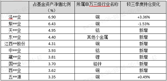 前十大持仓占比合计45.4%,涵盖全球矿业巨头等核心标的,同时布局锂、铅锌等品种及部分港股仓位。