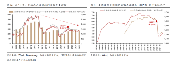 逻辑三:供需格局有望改善。库存端,原油市场正处库存历史低位。供给端,过去 10 年里,全球在石油供给端上的资本开支投入呈收缩趋势。