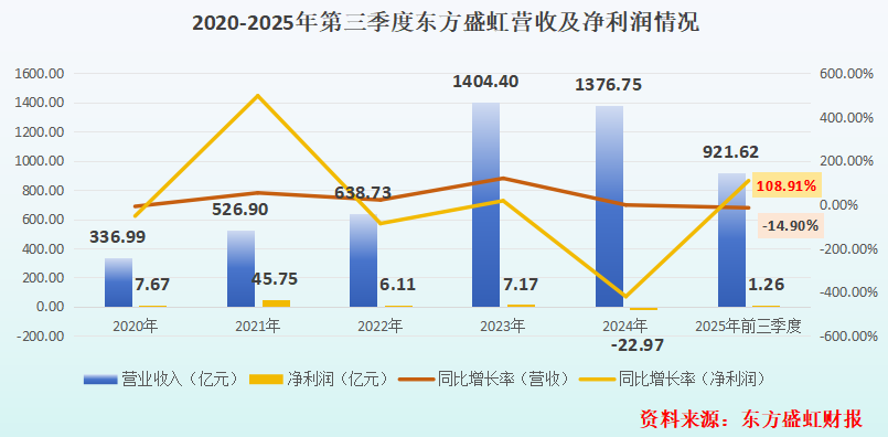 2025年前三季度,东方盛虹营收921.62亿元,同比下滑14.9%;净利润却为1.26亿元,同比增长108.91%。