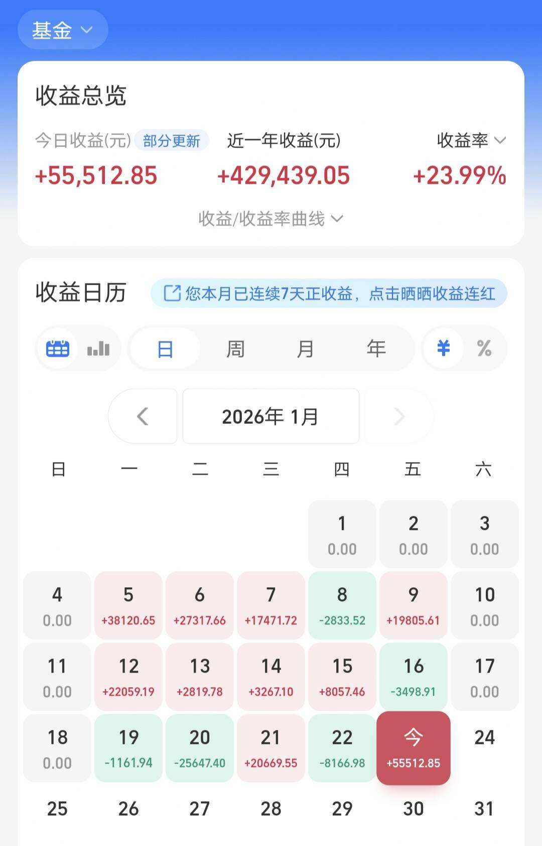 基金大部分更新了,今晚老哈赚5.5w,固态+6.95%吗,今年乃至累计收益再创历史新高,又吃到肉了。短期固态老哈继续拿着等轮动行情,起风了,加油!