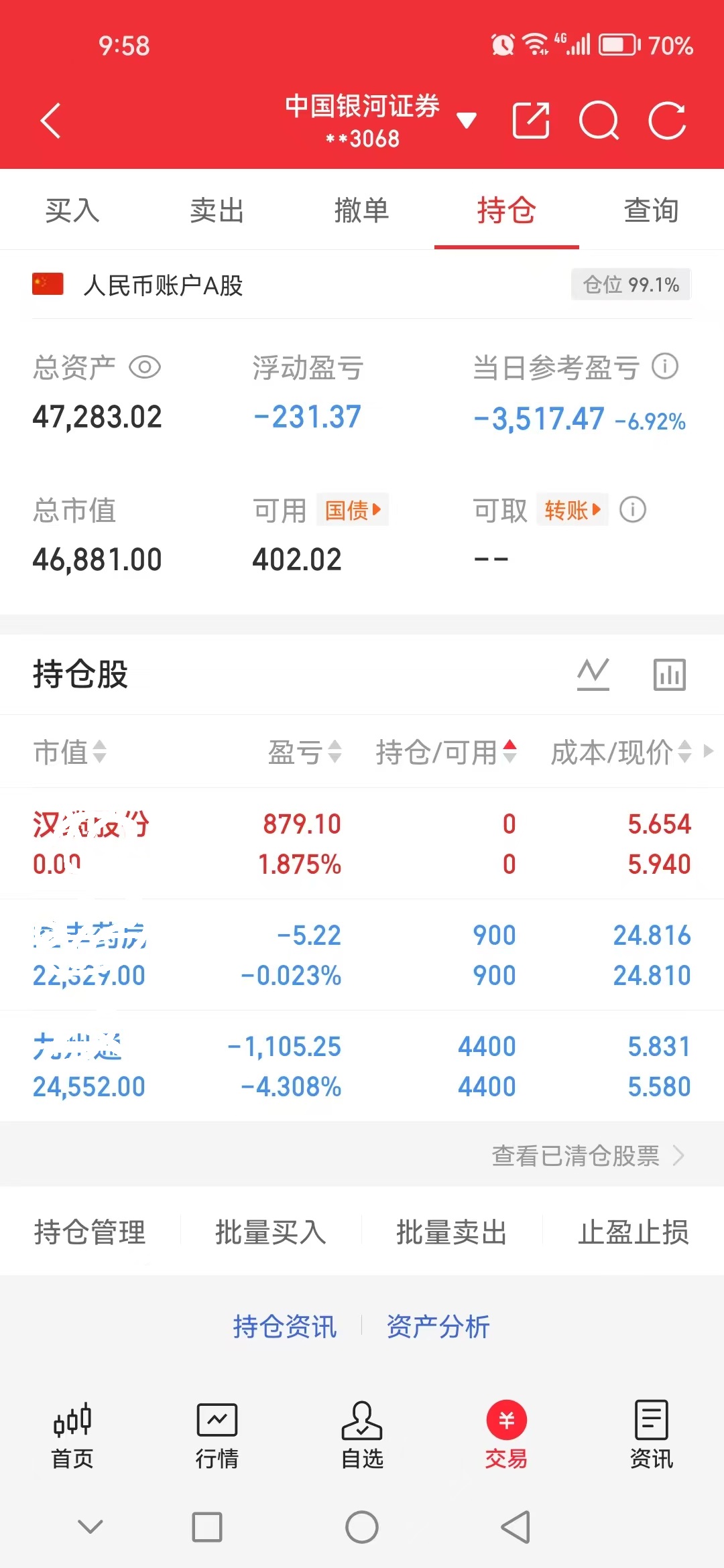 今作:汉缆股份+1.875%↓,清仓(卖亏了)。益丰药房-0.023%,打首板 建仓。九州通-4.308%,打首板 建仓(炸板,面一碗)。