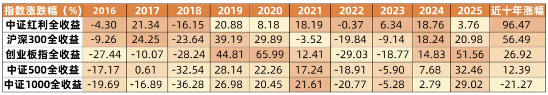 注:指数数据来源Wind,代码分别为:H00922、H00300、399606、H00905、H00852,统计时间截至2025.12.31,过往数据不代表未来收益。