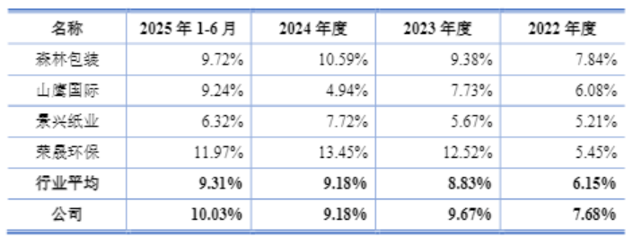 毛利率层面,2022年至2025年上半年,林平发展主营业务毛利率分别录得7.68%、9.67%、9.18%和10.03%,始终高于行业平均水平。尤其在2025年上半年,公司完成瓦楞纸产线技术改造后,相关产品生产效率显著提升,直接驱动主营业务毛利率上行,印证了公司工艺升级与成本管控能力,为后续提升市场份额、拓展高附加值产品提供了可持续的支撑。