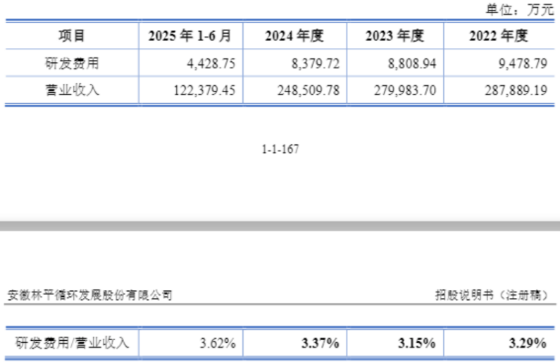 林平发展自成立以来一直重视对研发的投入。2022年至2025年上半年,公司研发费用占营业收入的比例分别为3.29%、3.15%、3.37%及3.62%。与此同时,公司积极加强与科研单位及高校的产学研合作,提升技术转化能力与研发实力。