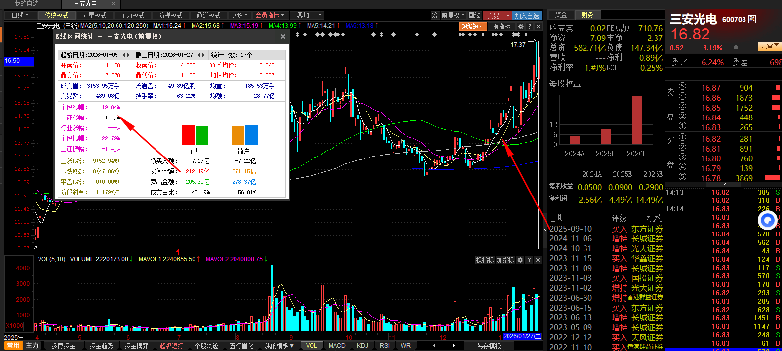 2:三安光电:600703,加入股票池目前盈利差不多接近20%l, 不需要每天都提示,目标价格这些都是给了的!!到了就选择止盈即可