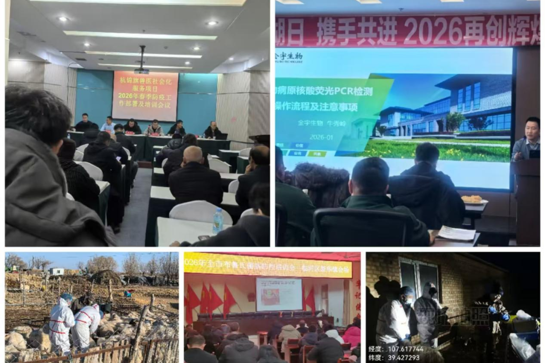 新春将至,年味渐浓,春季动物疫病防控进入紧要关头。面对气温回升、病原活跃、畜禽调运频繁等多重风险,金宇生物内蒙古大区全员以“开局即决战、起步即冲刺”的昂扬姿态,抢先抓早全力备战,吹响春防“冲锋号”,奋力冲刺全年“开门红”。