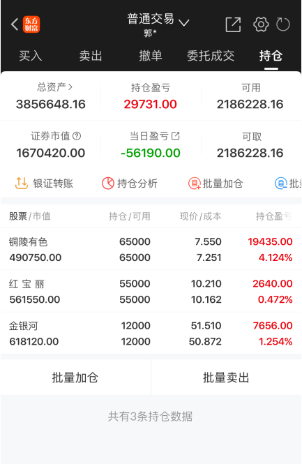 持有情况:铜陵有色、红宝丽、金银河