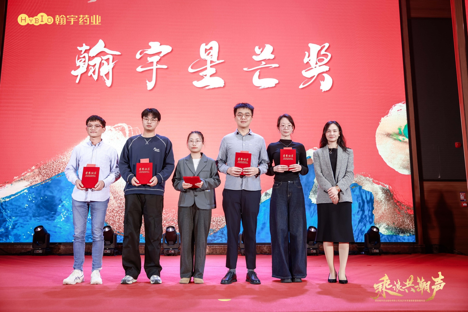 年会现场隆重举行了荣誉表彰仪式,向过去一年闪耀星芒、锐意进取的翰宇人致敬,生动诠释了“乘浪共潮声”的集体力量,公司管理层向获奖者颁发奖章与荣誉证书。