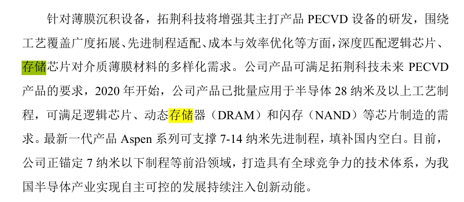 1.公司产品可满足拓荆科技未来PECVD产品的要求,2020年开始,公司产品已批量应用于半导体28纳米及以上工艺制程,可满足逻辑芯片、动态存储器(DRAM)和闪存(NAND)等芯片制造的需