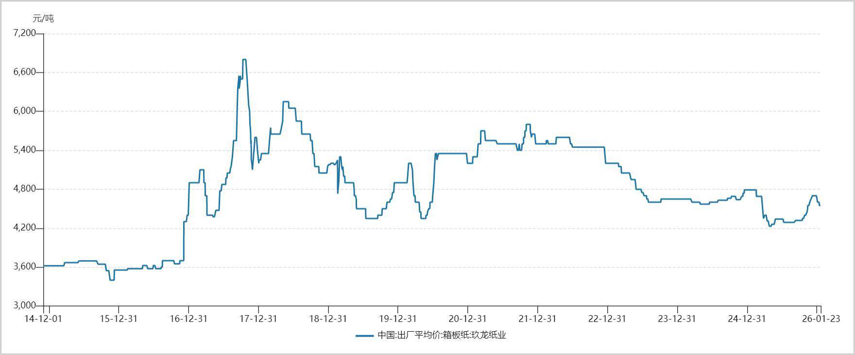 以玖龙纸业的箱板纸为例,2025年4月其价格曾跌至4230元/吨,为近十年最低点,较2017年高峰下跌超过40%。而在“反内卷”措施推行后,到2025年底价格已回升至4700元/吨左右。