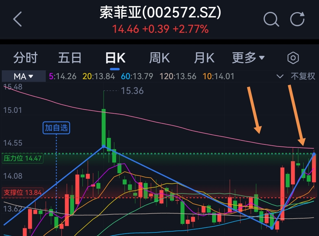 $索菲亚(SZ002572)$ 小索目前碰到的年线压力位,我挂的是15 减仓-5%,没啥问题,应该能到![拜神 [拜神]](http://gbfek.dfcfw.com/face/emot_default_28x28/emot51.png)