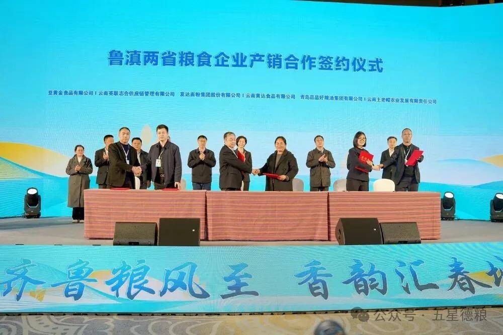 2026年1月23日,春城昆明洋溢着齐鲁粮油的醇厚香气。在备受瞩目的“齐鲁粮油”中国行昆明推介会暨2026鲁滇粮食产业发展合作洽谈会上,德州市精心打造的“五星德粮”区域公用品牌携旗下三家授权企业——发达面粉集团股份有限公司、中粮面粉(德州)有限公司、乐陵市希森马铃薯食品有限公司隆重登场,以卓越品质与创新产品,成功完成了一次面向西南市场的精彩亮相与深度开拓。