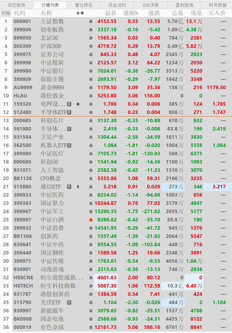 今天A股又是特朗普时间!因为昨晚特朗普说美元贬值,直接导致今天国际黄金暴涨3个点到达5250美元,目前黄金白银上涨利好资源有色也是大涨,大龙继续冲冲冲!但A股这边的话总体还是震荡,今天只有恒生科技和CPO勉强翻红,其他板块弱势为主,月底大龙不做啥大动作,现在指数涨到4200很容易,基金就难点,但总体A股还是慢牛不变,继续冲冲冲!