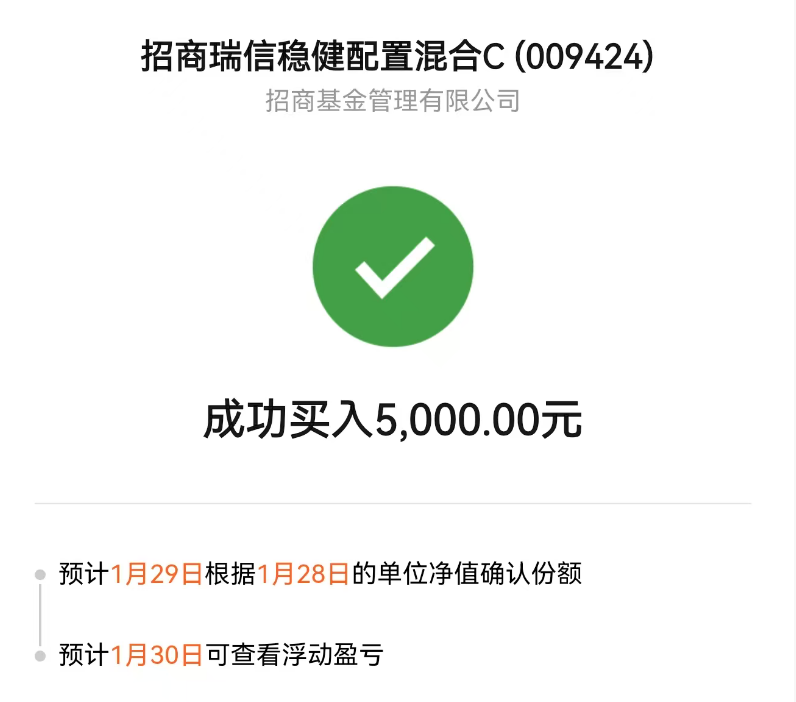 二、买入招商瑞信稳健配置混合C $招商瑞信稳健配置混合C(OTCFUND|009424)$