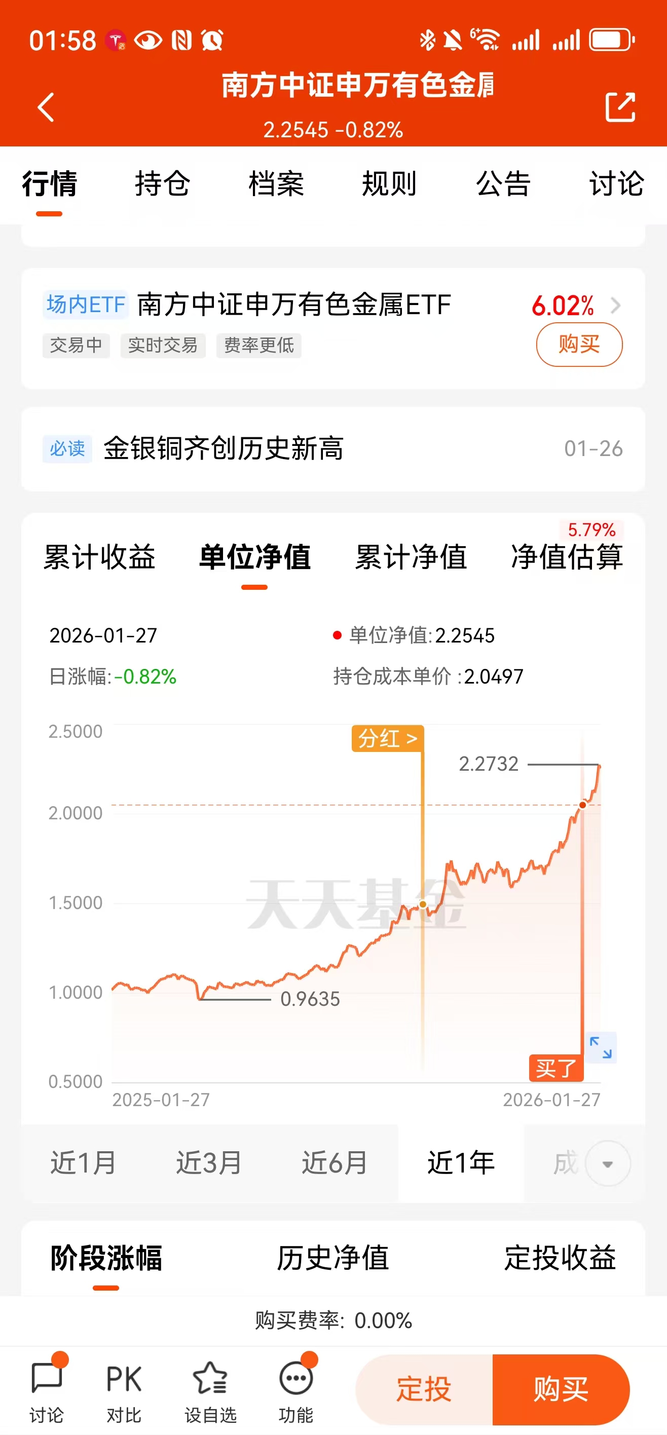 三、买入南方申万有色金属ETF链接C 1000元$南方中证申万有色金属ETF发起联接C(OTCFUND|004433)$