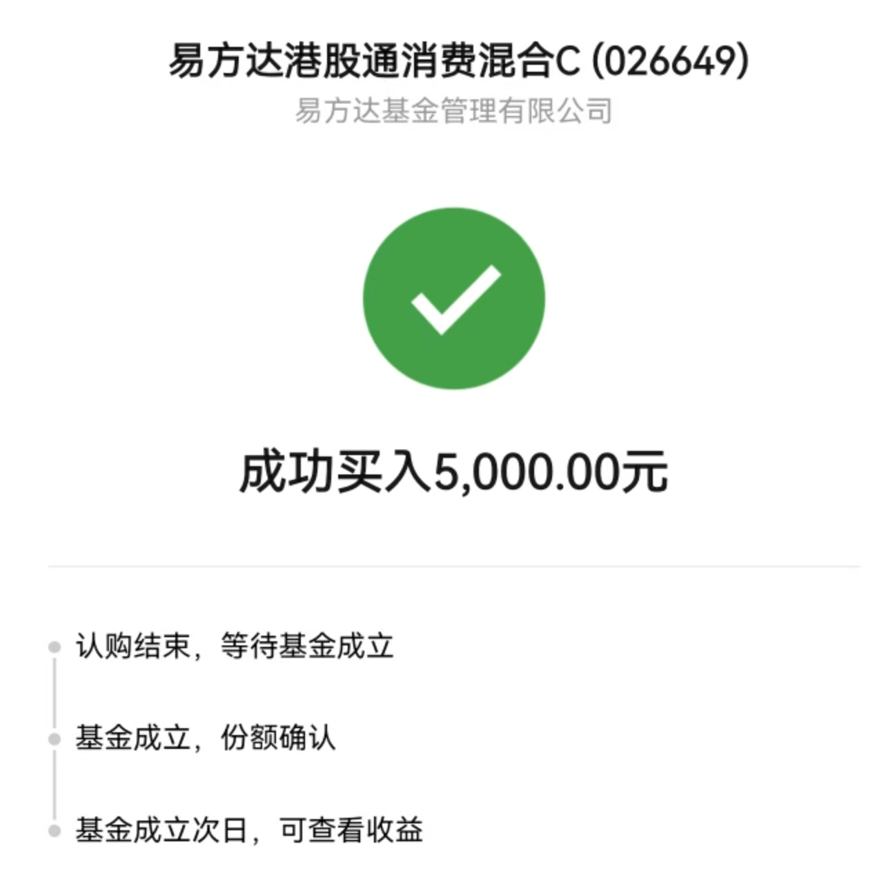 一、买入易方达港股通消费混合C 5000元 $易方达港股通消费混合C(OTCFUND|026649)$