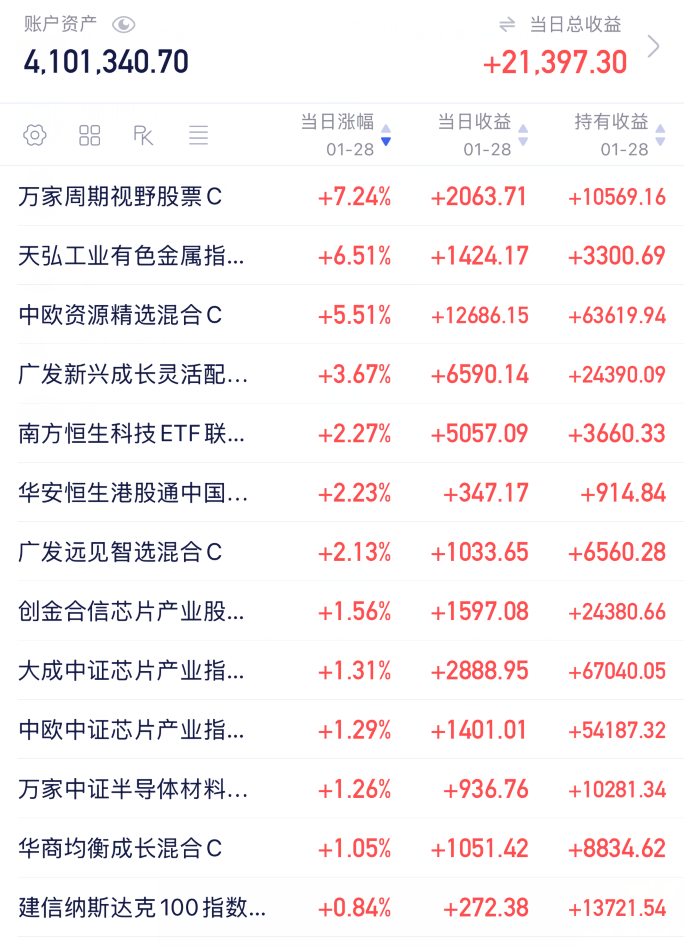1 .OK!终于收盘了!今天行情又是非常不一样的,今天的大哥是有色资源黄金煤炭白银、恒生科技,半导体尾盘也拉升翻红了还不错,今晚还是可以继续吃肉的啦,就是卫星和植物人今天拖后腿,现在A股慢牛没结束,就是震荡点,慢慢来,坚持就是胜利,加油!