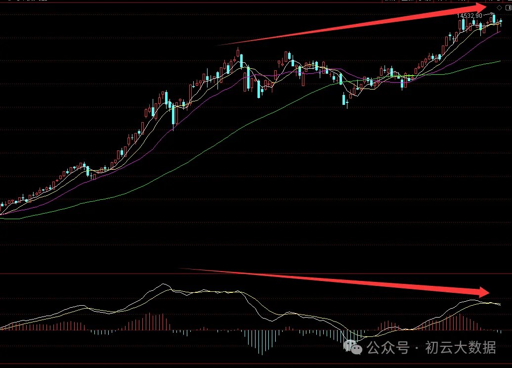还有,日线级别的背离已经形成。大家看下图。这种级别的背离,一旦成形,不得不防备。