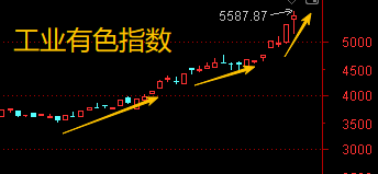 工业有色金属板块指数,技术面,K线12月底突破4000一线的压制。之后,一路小阳小阴推高。从上个星期开始,正式进入主升浪行情。