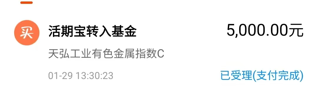 下午,加仓$天弘工业有色金属指数C$ ,右侧主升浪行情,趋势很清晰啊。