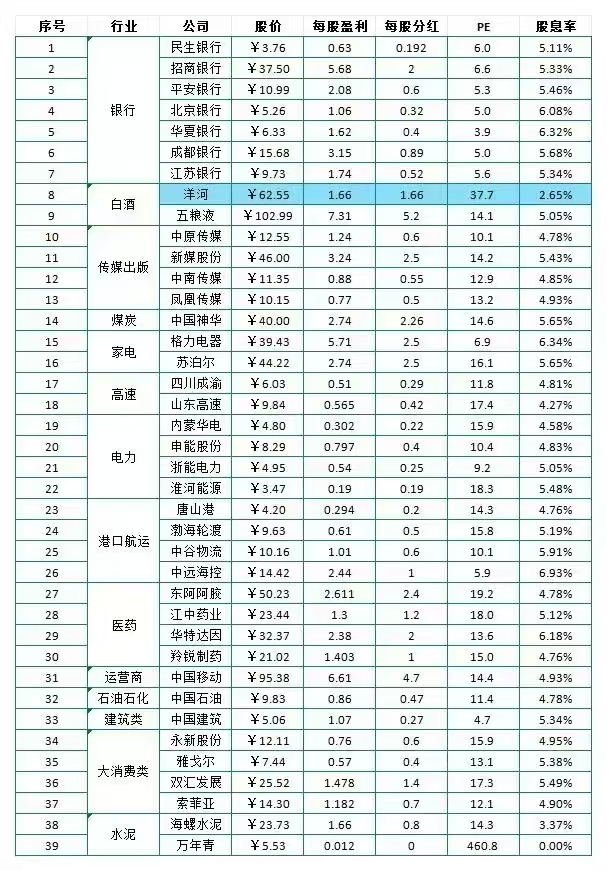 4、最后分享一张表格,前几天在网上看到的,数据对了一下,还算准确,这几天股价涨跌后又变了,大家做个参考。