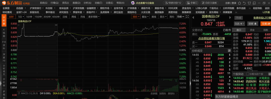 除此之外就是石油loF限额10元,限额高一点的,能混上猪脚饭的标的有国泰商品LOF,限购1000,当前溢价7%,预计单账户能获利70大洋左右,如果黄金继续上涨,还有上升的空间