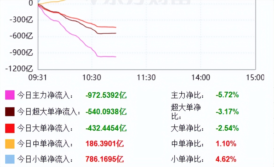 主力资金流出966.75亿,主力跑的真多啊,没人管管