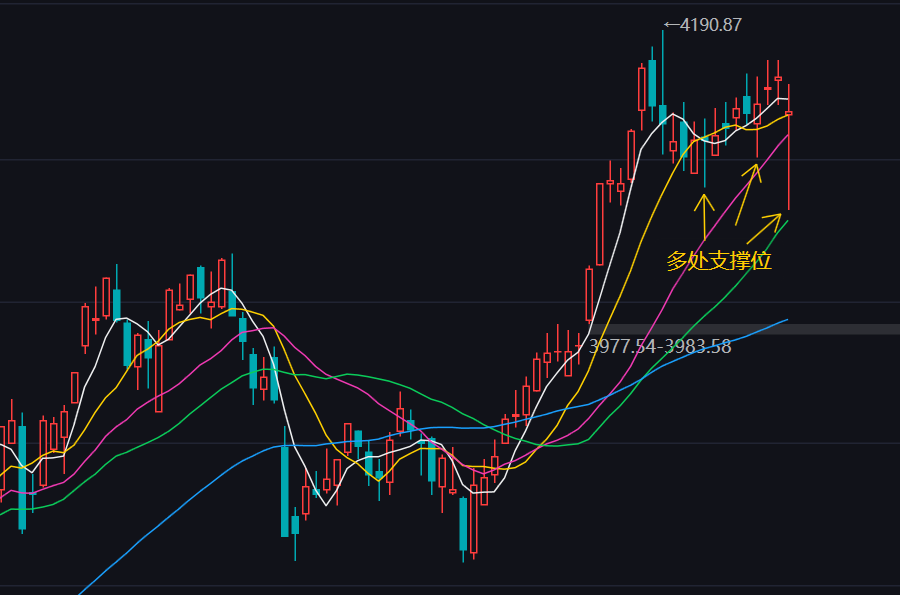 上证指数:今日市场自4190点以来的调整,今日因有色的大幅度调整,导致上证指数下行探底,今日最低分时低点到4064点位置。随后市场向上震荡回升,重新收复上方均线。说明此时上证指数的下方抄底盘强劲,做多力量充足,多次支撑回撤试探后会形成向上的趋势突破。