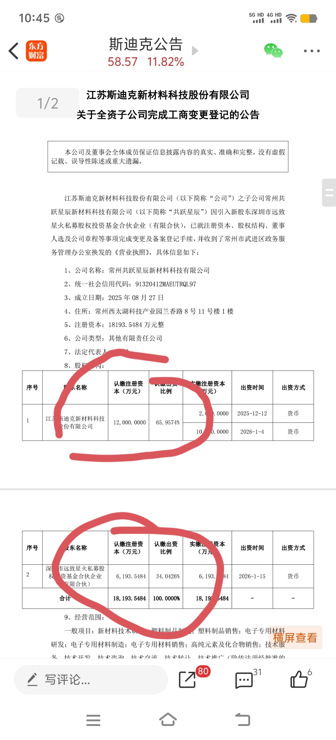 $斯迪克(SZ300806)$ 华为与斯迪克磁电存储合作公司,股权比例是多少?斯迪克是大股东65.9574%,华为34.0426%。华为与深圳市远致星火的关系是深度绑定的战略合作伙伴,而非单纯的母子公司。远致星火是华为对外投资的核心载体之一,也是识别华为产业链的重要风向标 。