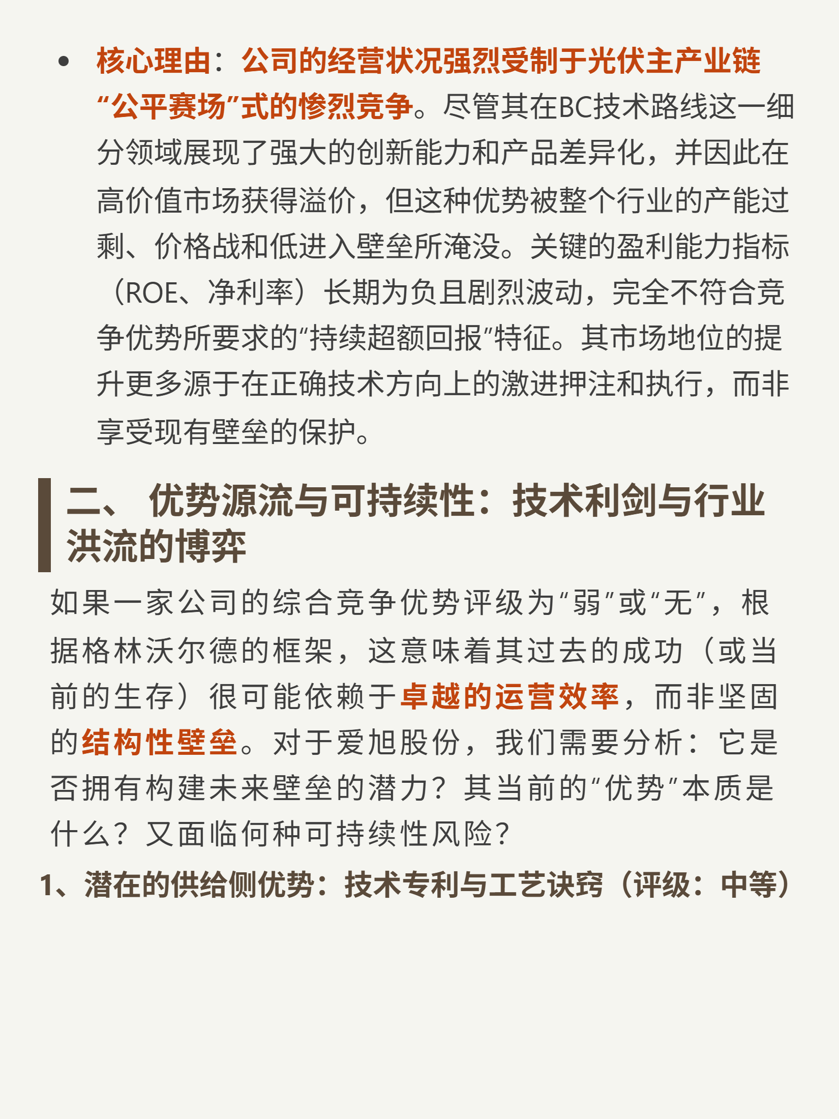 $爱旭股份(SH600732)$$晶澳科技(SZ002459)$$隆基绿能(SH601012)$最近研究爱旭股份,核心结论是它当前没有可持续竞争优势,全靠运营效率在光伏“内卷”中拼杀。