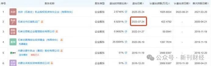 然而,一道微妙的历史纽带仍长期存在,即股东之一的石家庄红旗乳品厂。该厂不仅长期持有君乐宝股权(直至2023年7月退出前仍持股约6.93%),还曾持有三鹿集团0.1974%的股份。