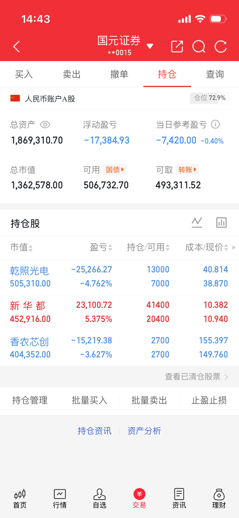 郑重声明:仅为个人理财日志,绝不构成任何操作建议!市场有风险,入场请谨慎,理性投资,切勿跟风!!!$乾照光电(SZ300102)$ $新 华 都(SZ002264)$ $香农芯创(SZ300475)$
