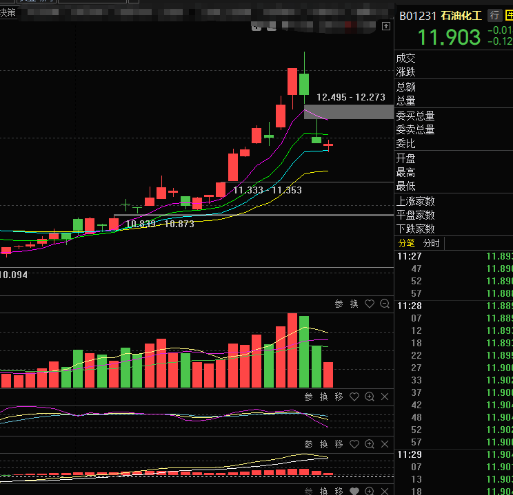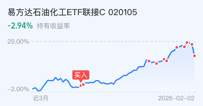 一 石油化工今天小涨,预估涨一点多,小俊稍微加投个二万,逻辑一个石油化工没有在高位横盘震荡过,其次老美也不希望油价过低,而且石油是美元交易的,最后技术面石油化工没有在高位横盘震荡过,所以出货不是太多。因此小俊加2万元$易方达石油化工ETF联接C$