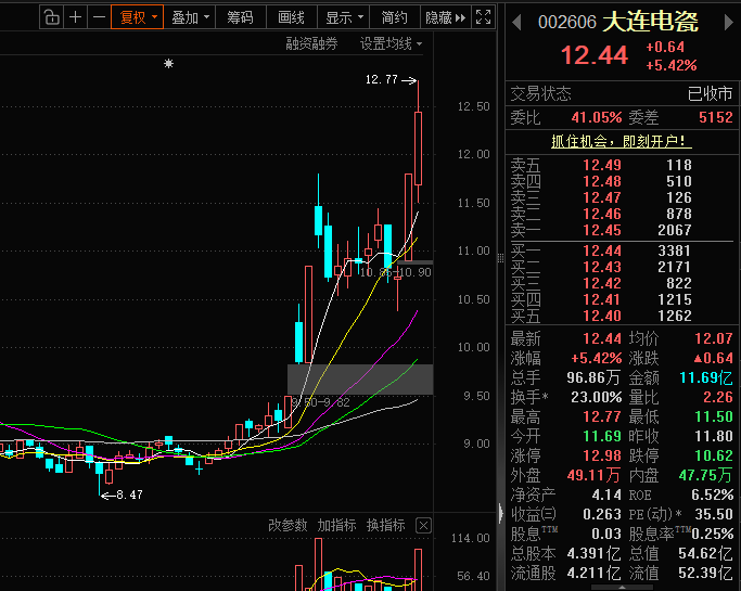 场外持仓者:不盲目进场,等待股价回调至11.80区间缩量企稳的话,可以小仓入场。或者是开盘30分钟内放量突破12.77 ,也可以轻仓跟进。只要没出现这两个信号,就坚决不进场,保持观望规避高位波动风险。