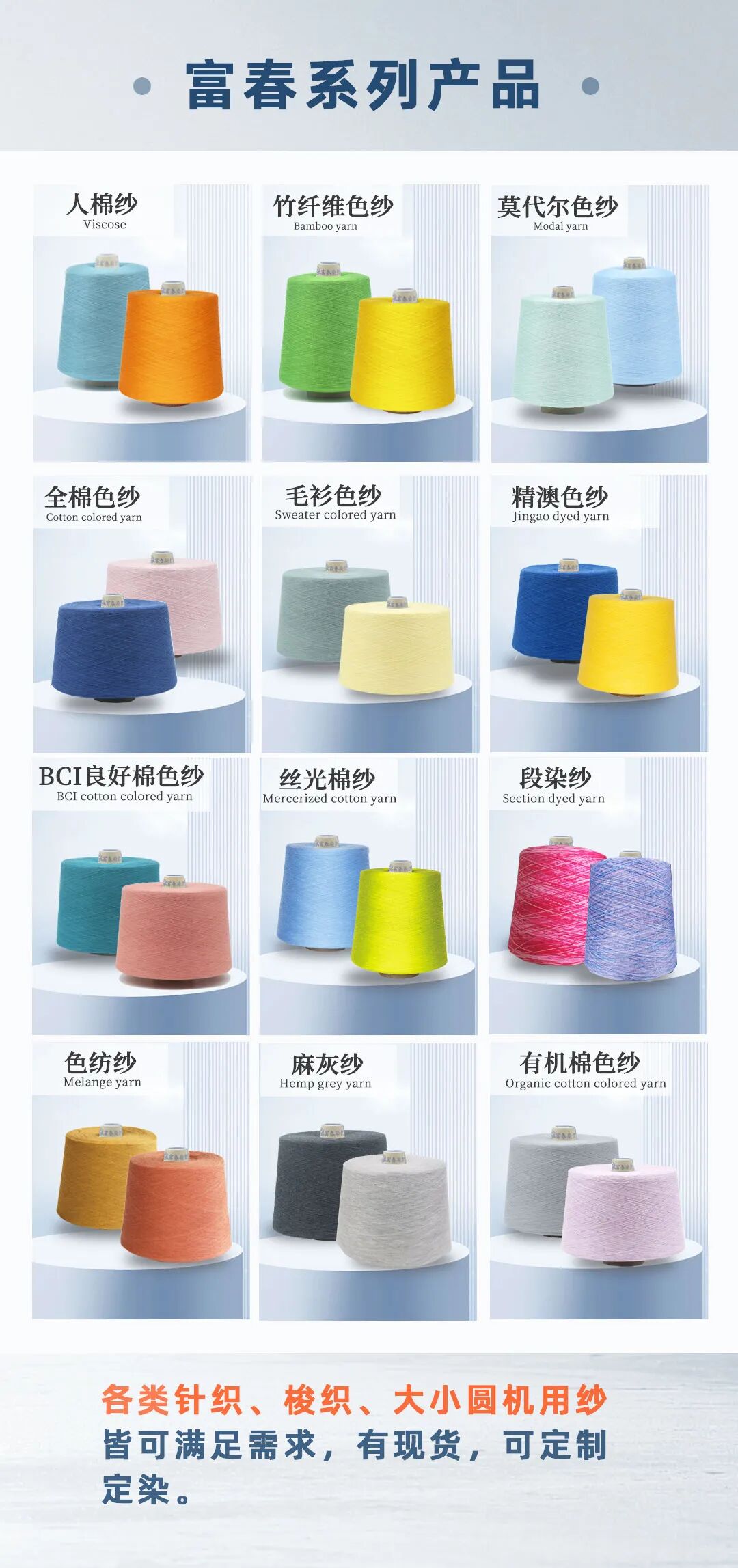 富春染织自创立以来,致力于企业技术发展和品牌建设,立足于高档、高质量、高技术含量和高附加值产品的生产,产品广泛应用于各类针织大圆机、横机、袜机以及梭织机使用,公司于2021年5月28日在在上海证券交易所成功上市,成为国内唯一一家以筒子纱为主营业务的上市公司。