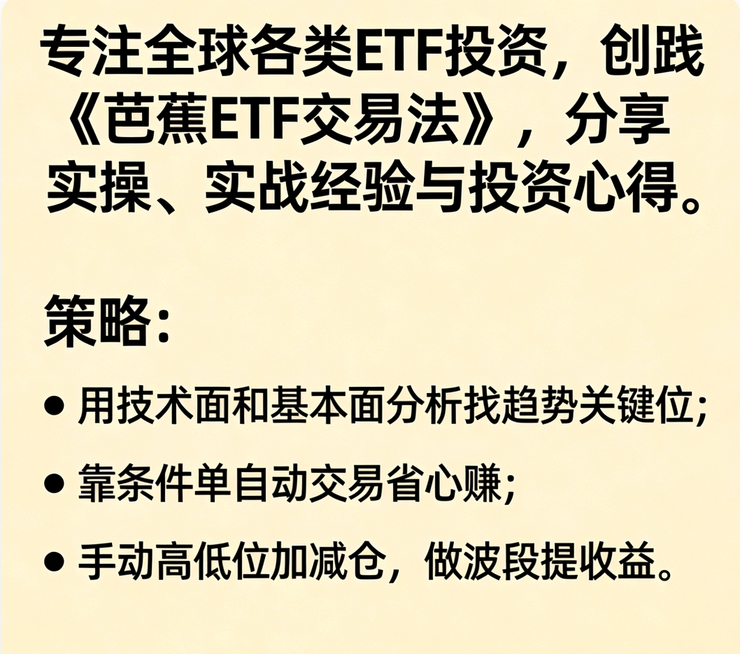 “阴极生阳,阳极生阴” ,大家好,我是芭蕉,专注ETF网格交易,分享ETF操作及行情分析和交易干货。