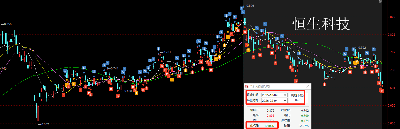 恒生科技 ETF 从 2025 年 10 月 9 号到 2026 年 2 月 4 号,83 个交易日跌幅 19.86%。