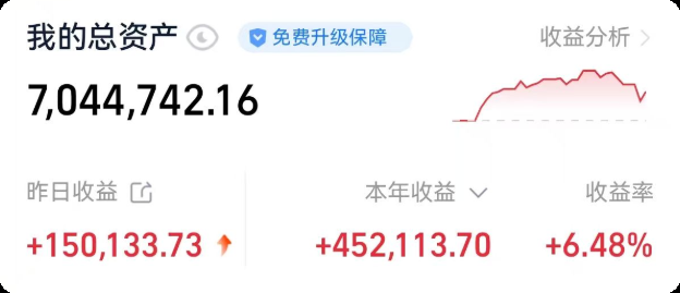 至于昨晚黄金大涨,今天我们黄金股了,我也没搞懂啥原因,难道是不给涨,还是基金卖的人太多了,所以我也不想再公开买入操作了,反正第一次大跌小俊就说了,不想冒险的那怕把万家南方全卖了,总体还赚很多钱。