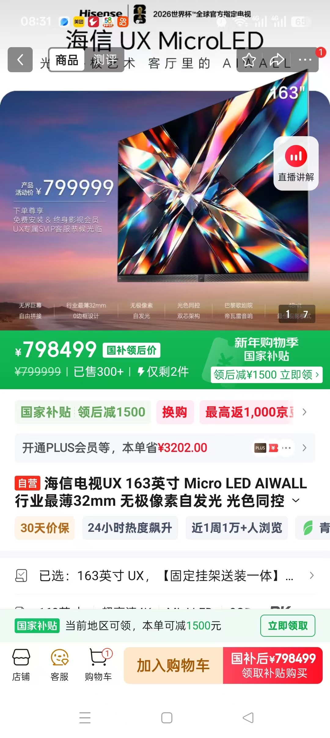 游戏电视3.0标准正式落地,京东联合奥维云网、中国电子视像行业协会、B站共同发布《游戏电视3.0标准白皮书》,进一步明确游戏电视3.0时代的行业新标准,并与海信、TCL、索尼、三星、LG、小米、雷鸟、Vidda、酷开、华为、长虹等电视品牌,在现场签署近60万台大单采购协议,加快推动游戏电视的普及。即日起至2月23日,在京东购买指定电视产品可享国家补贴和京东以旧换新等多重优惠,买百吋电视更可享受100%免费送装到家的服务,还有马年礼盒免费赠送。