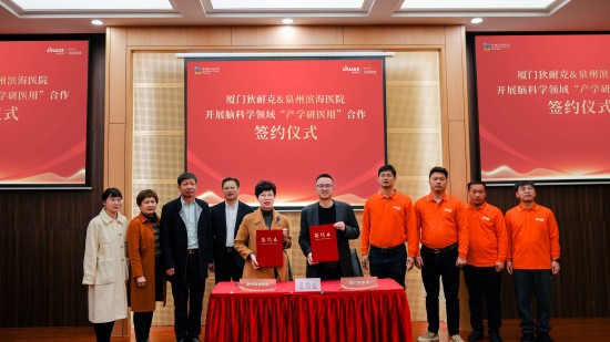 2026年1月8日,狄耐克与泉州滨海医院关于开展脑科学领域“产学研医用”合作的签约仪式隆重举行。泉州滨海医院董事长王月娇女士、泉州滨海医院副院长钱家强、厦门狄耐克智能科技股份有限公司董事长缪国栋先生、脑机事业部研发总监蔡建军等领导出席仪式,共同见证这一重要时刻。