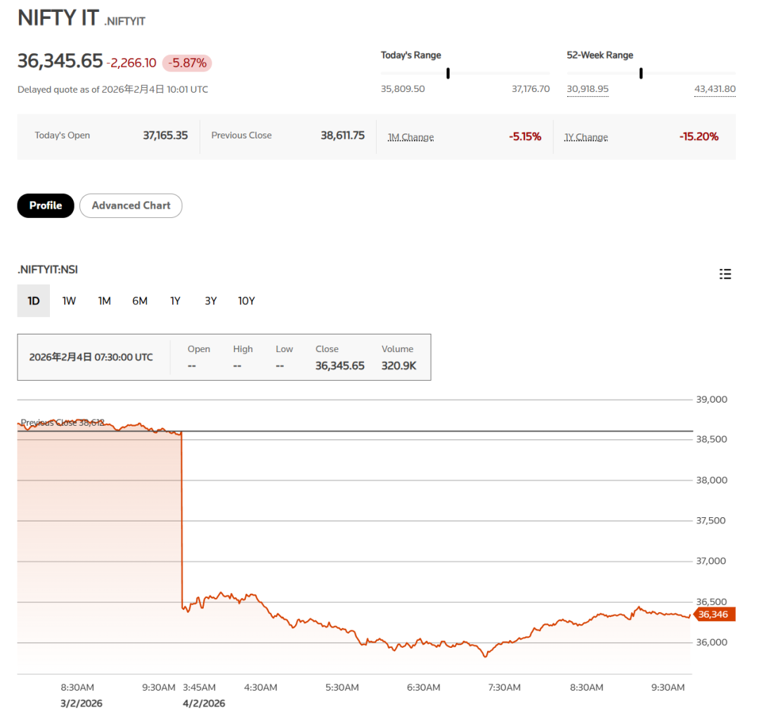 印度IT出口商指数今日下跌近6%,跟随全球软件股的跌势。