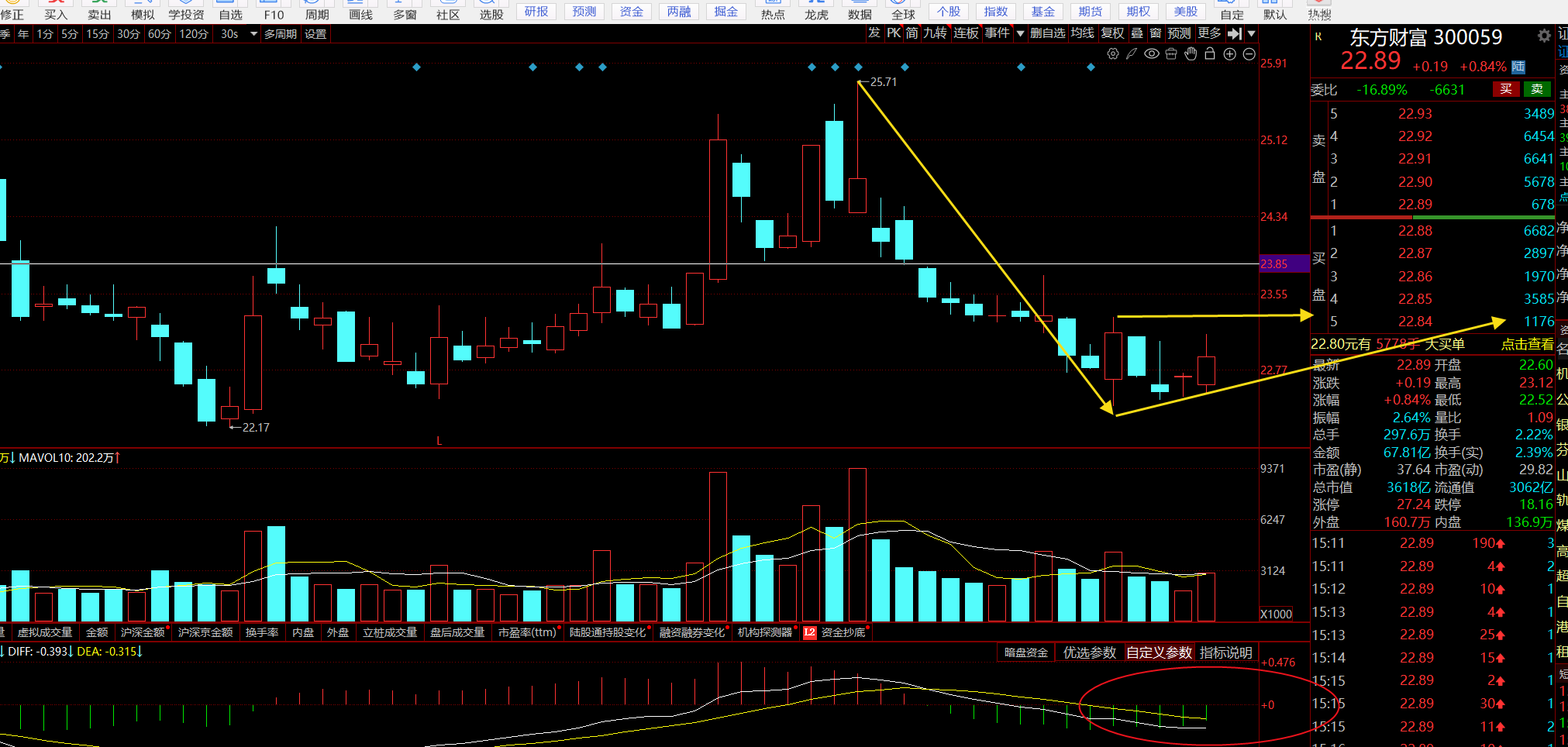 东财继续看震荡筑底急不得,控制好仓位继续低吸高抛和高抛低吸的节奏,不断给底仓降低成本!目前日线MACD动量柱是缩短的,一旦金叉是能回到24之上的。